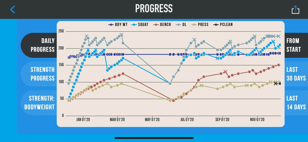 1. Excellent progress; seeing your level of diligence and dedication to research, correct form, and consistency impresses me- I hope all new gym-goers take the gym/process as seriously as you do. Good luck with your goals for 2021!