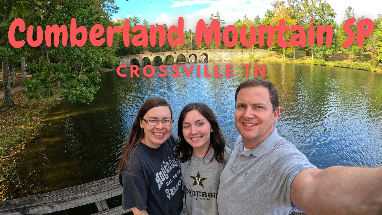 Cumberland Mountain State Park (in Crossville, TN) was our first stop on Emily’s Fall Break. I almost lost her (not really) at the very beginning of our 12th RV trip (when our trailer unexpectedly shifted while unhooking). Molly came up from Chattanooga to join us for an afternoon (in between class/work). We hiked around the very pretty Byrd Lake with her (on the Byrd Lake Trail and Pioneer Short Loop). I did a little late-night mechanic work and we hiked the Cumberland Plateau Trail (below the pretty bridge/dam) before heading to our next location.