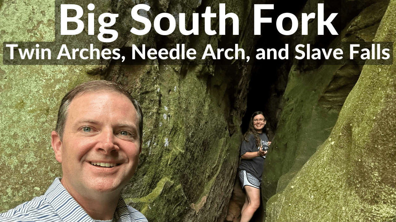 We loved hiking all around Big South Fork. We spent a day at Twin Arches. They were enormous! I can’t believe these are in Tennessee. I was arch-struck! So many ‘that’s what she said’ jokes! After Emily broke her toes on the first hike, she wanted to persevere and finish the day’s 2nd hike. We tried to beat a nasty storm to reach Needle Arch and Slave Falls. The trail into Slave Falls was spectacular. Big South Fork was definitely a favorite of ours!