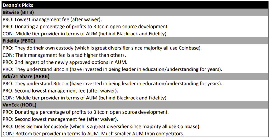 NOTE: Don’t buy a Bitcoin ETF. Just buy Bitcoin and self-custody it. HODL! But if the only option you have is a Bitcoin ETF make sure you buy a Bitcoin spot ETF (and a good one).