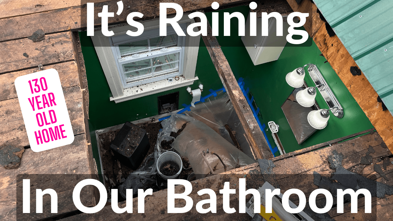 I knew we had a leak when we bought the house. We didn’t have a leak. We had a waterfall! One night, when it was raining really hard, I decided to do a little demo to figure out where the leak was. The answer: The entire roof! [much water in my face later] We got it buttoned back up before the next storm rolled in!